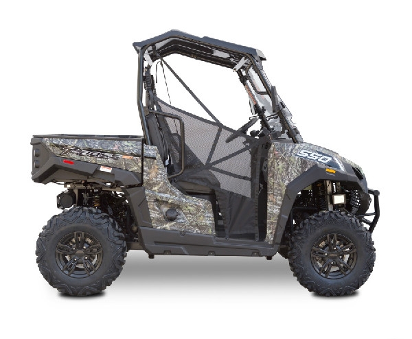 Elektrický posilovač řízení, pevná plastová střecha, plnohodnotné čelní plexi, přední ochranný rám, bezpečnostní sítě na straně řidiče i spolujezdce, madla pro spolujezdce, ocelová sklápěcí korba s plynovými vzpěrami, hlavové opěrky, tažné zařízení, elektrický naviják s tažnou silou 3000lbs a dálkovým ovládáním.